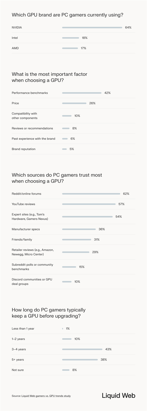即使是准备升级的玩家,39%计划等待1-2年,而另外37%表示只有当他们的当前显卡损坏时才会更换。