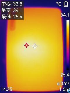 游戏过后机身背面最高温度34.1摄氏度。