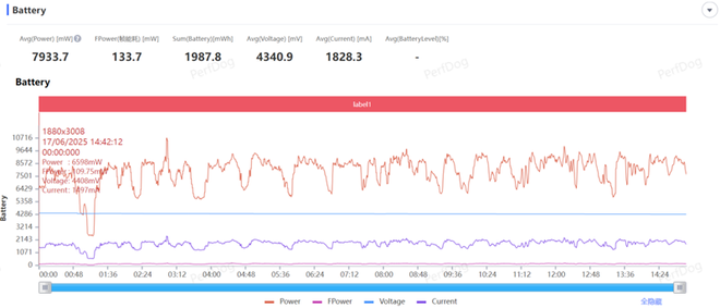 游戏期间的平均功耗为7.93W,可以看出K Pad为了保证高帧率,性能释放非常猛烈。