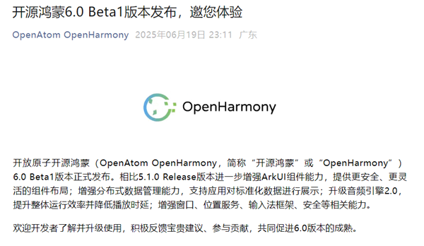 开源鸿蒙6.0大版本Beta1正式发布!带来一堆新功能