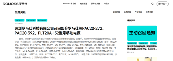 罗马仕表示,由于部分电芯原材料来料原因,极少数产品在使用过程中可能存在过热现象,在极端场景下可能产生燃烧风险,存在安全隐患。