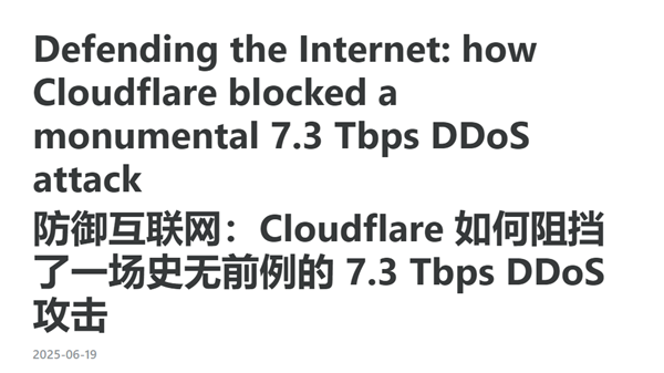 6月22日消息,近日,网络安全公司Cloudflare宣布,成功阻止了一次有史以来规模最大的7.3Tbps分布式拒绝服务(DDoS)攻击。