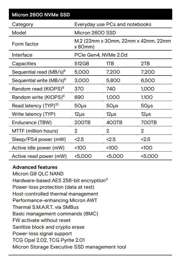 QLC性能媲美TLC!美光推出2600 SSD:自适应写入、7299MB/s读速