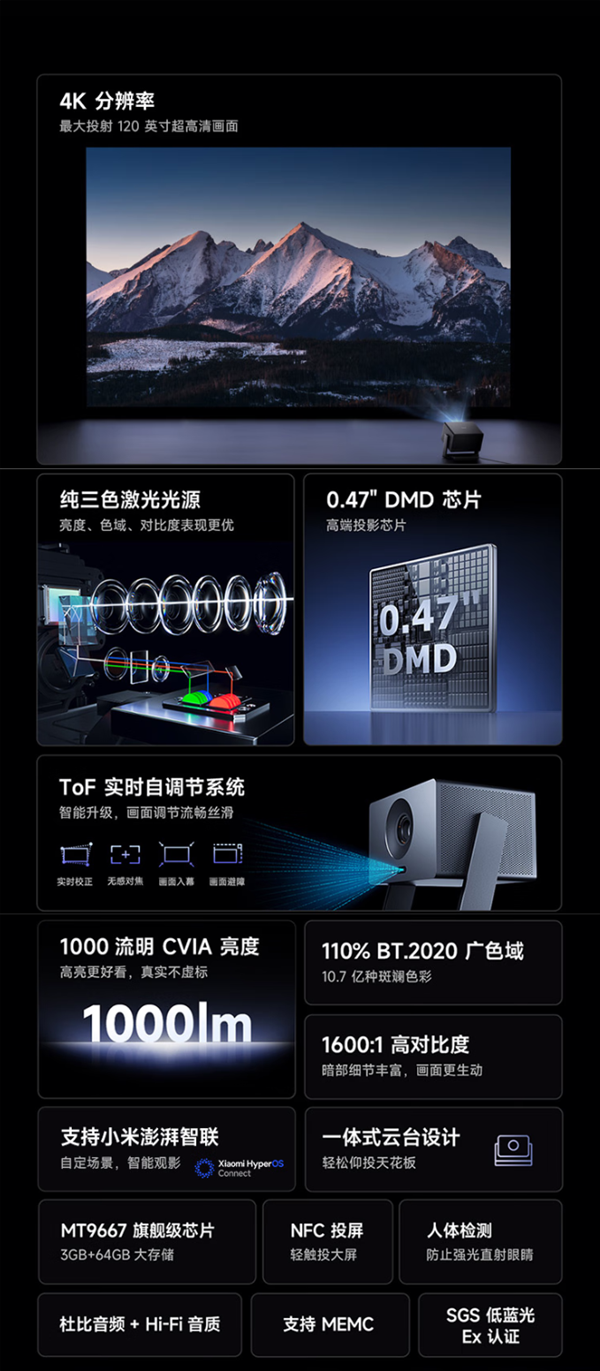 4399元!小米激光投影仪3发布:4K分辨率、1000流明CVIA亮度
