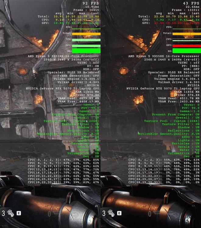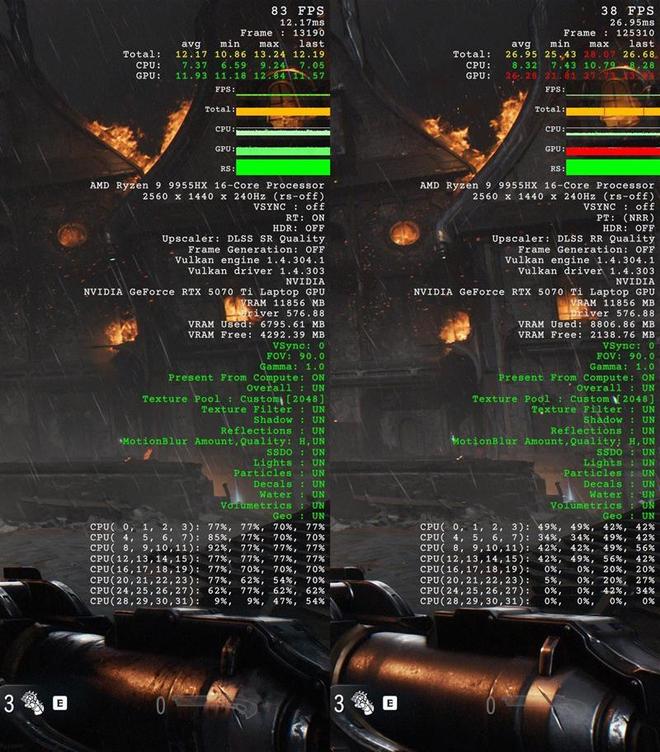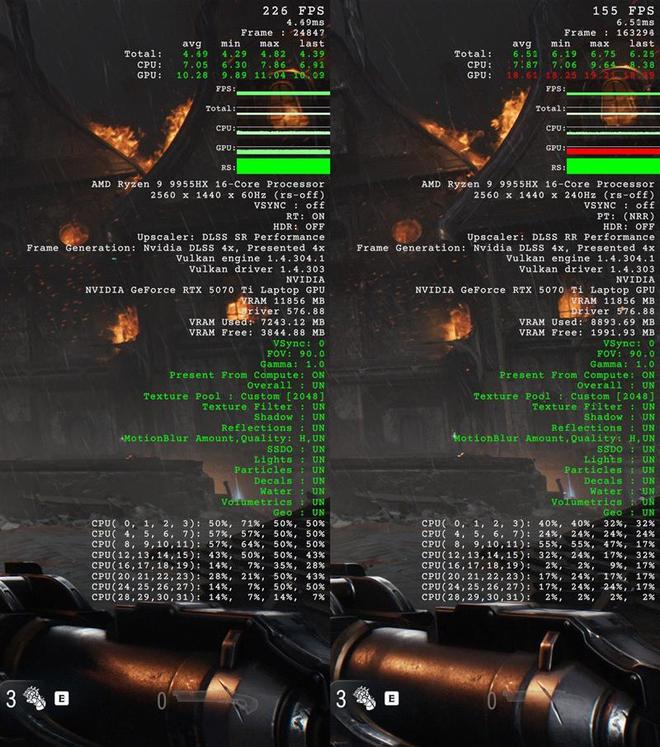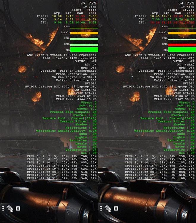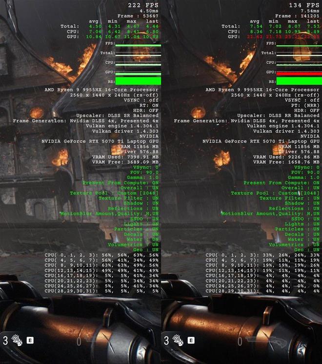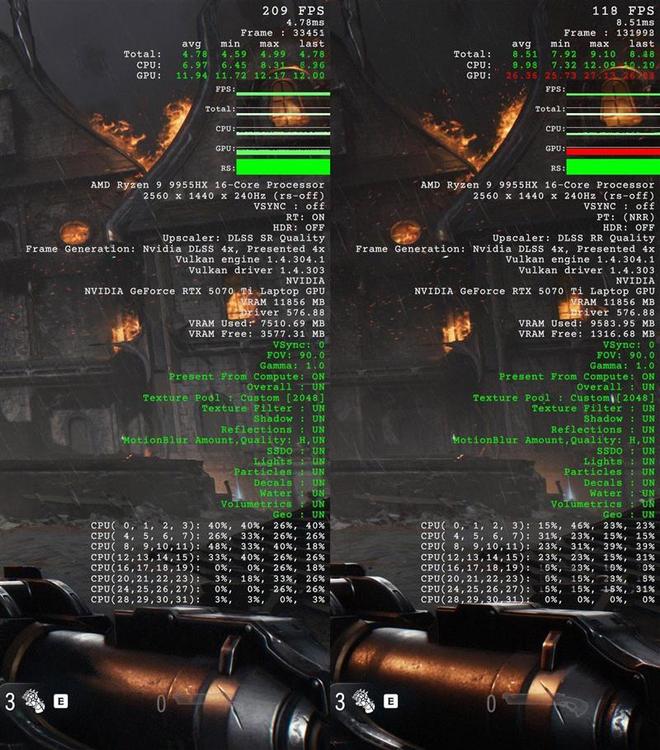 四、《毁灭战士:黑暗时代》测试:路径追踪对GPU负担极大 但让DLSS 4多帧生成效率更高