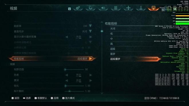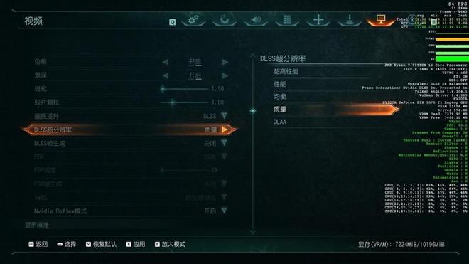 《毁灭战士:黑暗时代》的DLSS提供了"超级性能"、"性能"、"均衡"、"质量"、"DLAA"五个档位,方便玩家根据自己的配置进行微调,达到画质和性能的平衡。