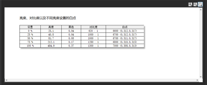 ROG魔霸9笔记本屏幕在各个亮度下黑场漏光控制都很好,可以实现超过1300的对比度,测试中最高亮度超过480nits。
