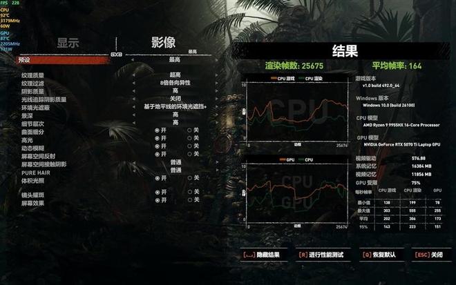 在《古墓丽影:暗影》中,使用最高画质进行测试,DLSS超级采样设置为质量,2K分辨率下平均帧率为164。