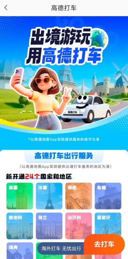 8月1日消息,高德地图宣布,在欧洲和亚洲24个国家正式上线打车功能。