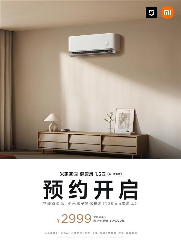 8月1日消息,小米最新推出了米家空调健康风1.5匹,目前已经开启预约,官方定价是2999元,国补到手价是2399.2元。