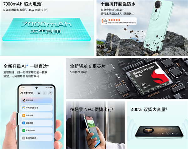 新机采用全新太极缓震架构,抗摔高度达2米,有效提升手机抗冲击能力25%,中框四角强化设计,降低中框变形风险15%,获得五星金标抗摔认证。