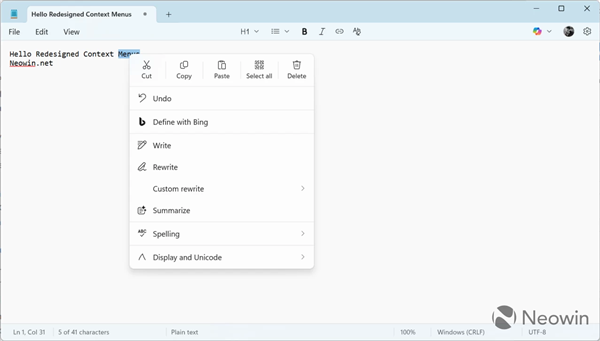 微软记事本将获全新右键菜单:更适配Win11风格