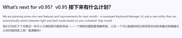 同时微软还透露了其下一个版本的计划,在0.95版本中,微软将解决Windows 11和10中长期缺失的一个功能:自动主题切换。