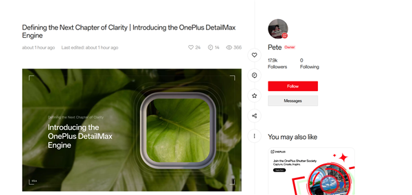 如今,我们正全力打造专属的影像引擎——OnePlus DetailMax Engine,它的使命不仅是记录世界,更要以真实、清晰的方式将世界的细节一一呈现。