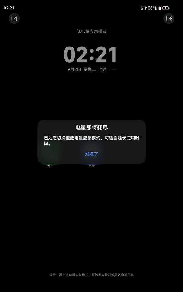 本次测试中,我们在设备电量剩余 1%、进入低电量应急模式时,连接随机自带的充电器,在充电过程中长按屏幕中央,进入 Turbo 模式进行充电实测。