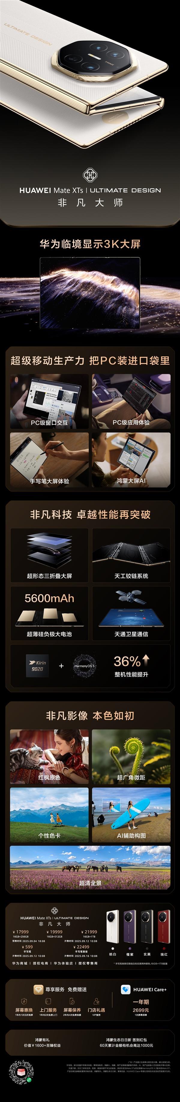 17999元起!华为Mate XTs三折叠今天首销:10.1英寸+麒麟9030