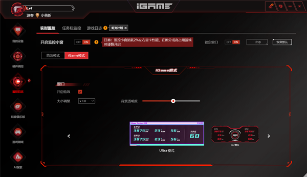 在硬件调控界面,可以控制全局的灯光表现效果。