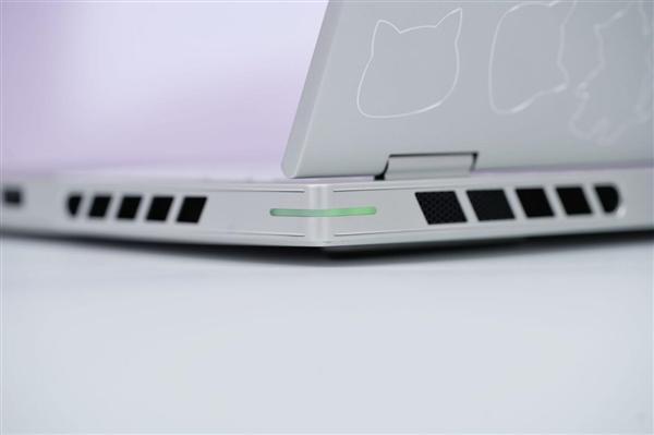 顺带一提,在侧边到背面的两转角处各有一条小灯带,可以在笔记本的控制软件中调整颜色和亮度。