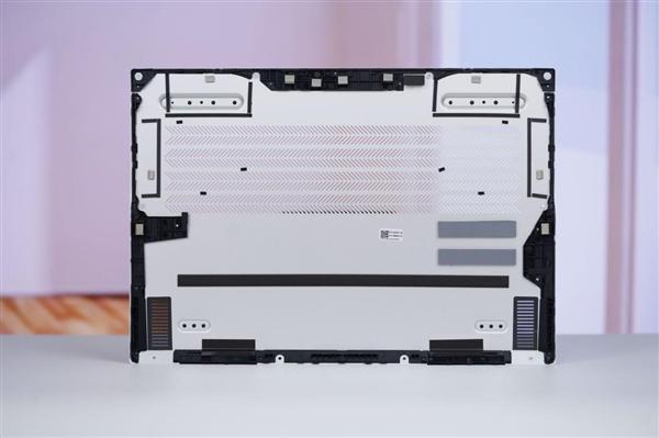 后盖上有垫高设通风设计,在两个固态硬盘位置都使用了导热片,值得好评。