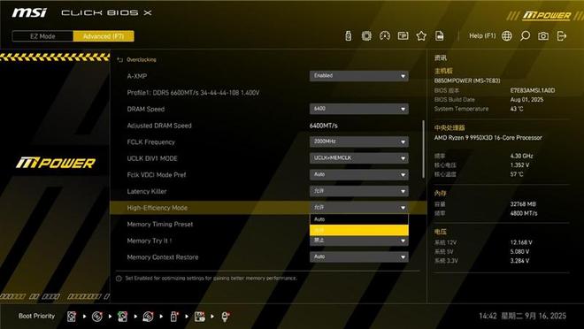 为了进一步提升带宽、降低延迟,B850MPOWER的BIOS还提供了"延迟杀手"和 "Memory Timing Preset"等技术。