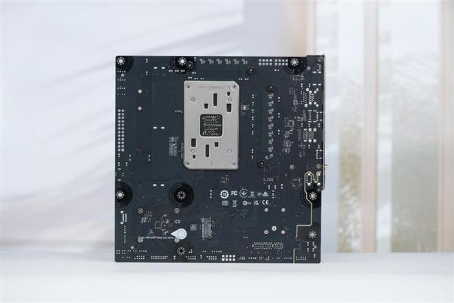 拆下散热片后可以看到正面有3个M.2接口,除了最下面那个是PCIe 4.0x4之外,其他2个都支持PCIe 5.0x4。