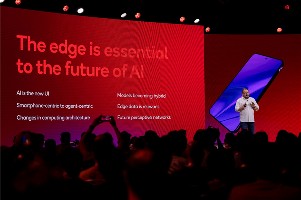 演讲中,安蒙提出了塑造AI未来的六大核心趋势——AI是新的UI(用户界面),从以智能手机为中心转向以智能体为中心,计算架构迎来变革,模型混合化发展,边缘数据相关性增强,迈向未来感知网络。