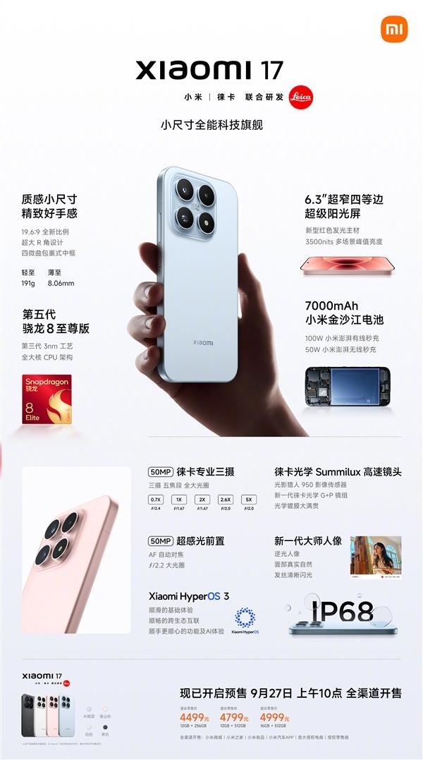 4499元起!小米17/Pro/Pro Max今日首销:全方位对标iPhone