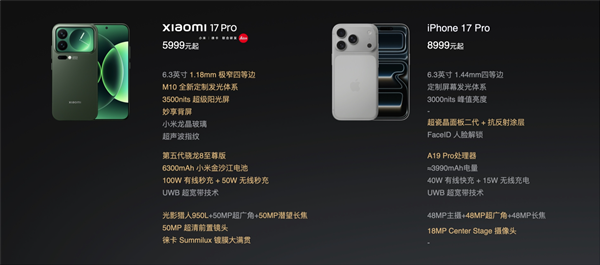 小米17 Pro比iPhone 17 Pro低4000元!配置/价格全对比来了:你支持国产还是苹果