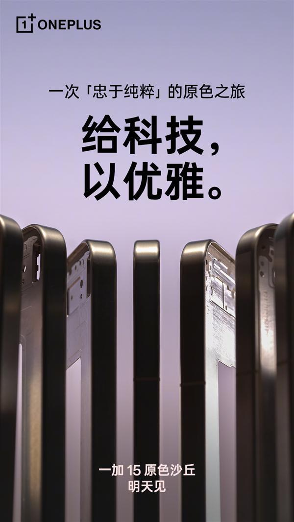 9月27日消息,一加官微预告,一加15原色沙丘明天正式公布。官方称这是一种"牛上天"的科技工艺,一场比钛强的工艺焕新,一次忠于纯粹的原色之旅。