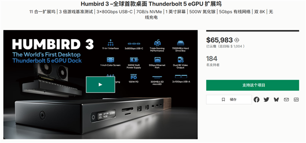 10月14日消息,近日,Humbird在众筹平台Kickstarter上推出了号称"全球首款"桌面雷电5显卡扩展坞的Humbird 3。