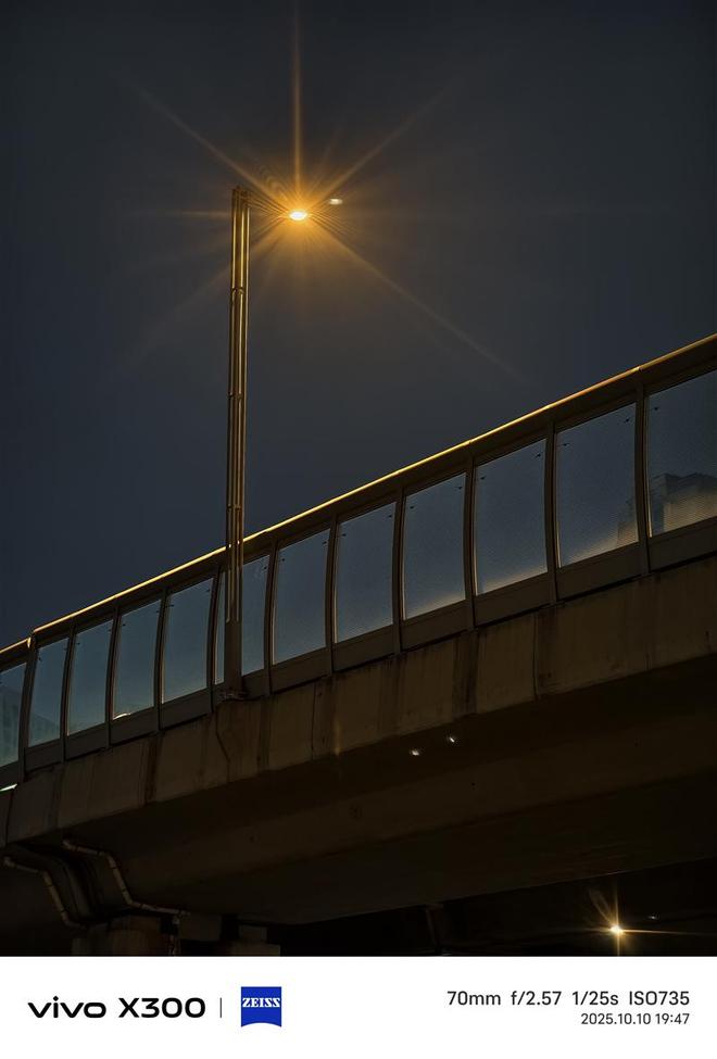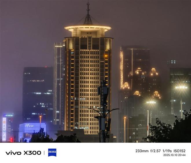 vivo X300在十倍变焦时也依旧可以手持拍摄夜景,画面依旧清晰锐利。