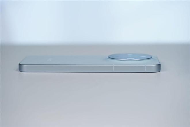 机身右侧非常干净,这个角度也可以看到背板在摄像头DECO周围有火山口型的凸起,柔和的曲线渐变减少了摄像头DECO的突兀感,让手感更加顺滑。