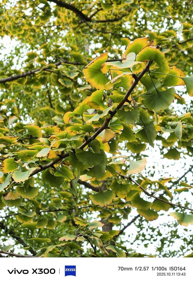 今年秋天的连阴雨让枫叶比往年早一个月就红透了,银杏也开始染上金黄,vivo X300的这个色彩表现浓郁真实,非常贴近实际看到的颜色。