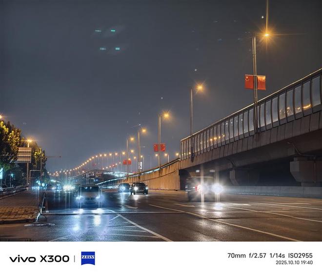 但非直射或不够强的灯光,眩光就完全看不到,比如远处的车灯和路灯,都没有眩光出现,其他夜景图片中的光源,也很少有眩光出现在画面里。我们认为只要拍摄是注意避开直射强光,vivo X300的眩光问题完全不需要担心。