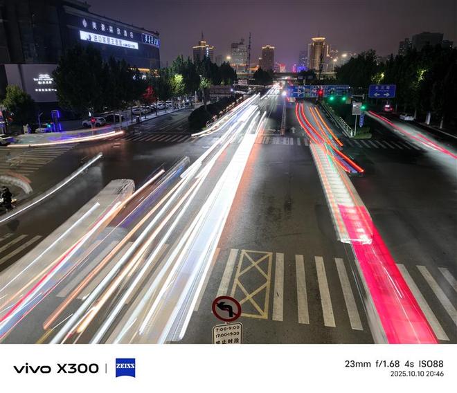 在拍摄夜景时vivo X300手机会自动提示启用时光慢门,里面提供了多种特殊的慢门拍摄效果,以前都是比较进阶的拍摄技巧,现在掏出手机就可以直接拍摄了。而且这张"车水马龙"也是手持拍摄的,防抖实力极为惊人。
