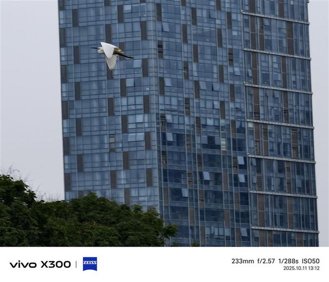 vivo X300的10倍长焦等效焦距233mm,拿来打鸟也是可以的。但比较遗憾的是vivo X300手机的快速抓拍功能在10倍变焦时无法启用,但我们测试直接抓拍也有接近50%的成功率,相当可观。
