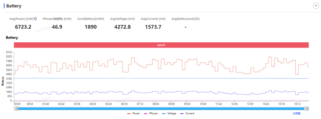 游戏功耗为4.4W,每帧能耗为74.1mW。