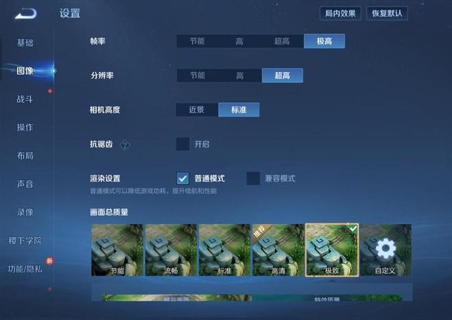 开启极致画质120帧,回放一局5V5天梯排位赛。