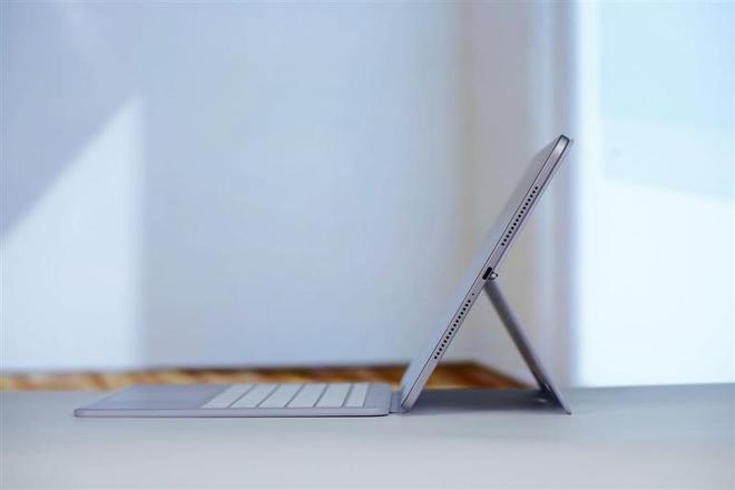 键盘背壳采用磁吸的方式连接,相当稳定,可以作为平板支架使用并自由的调整角度。
