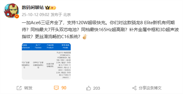 同档唯一165Hz超高刷屏!一加Ace 6外观首度揭晓