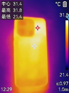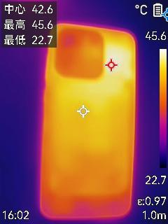 背部最高温度为45.6度,位于相机右侧,在平均7W的高压游戏下不到46度的整机温度实属难得可贵。