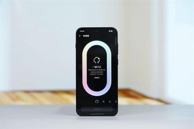 手机左侧有一颗特殊快捷按键,默认为AI一键闪记,短按能够识别并记忆屏幕内容,长按则能随时记录语音内容。