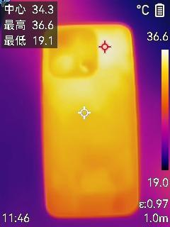 温度也很低,依靠强力的散热系统让温度均匀分布,最高温度为36.6度。