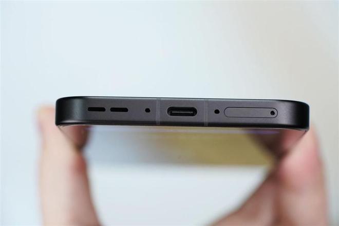 手机底部则是扬声器、双MIC口、Type-C接口、SIM卡插槽。