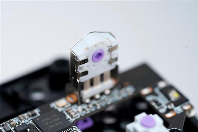 雷柏VT7金属漆鼠标滚轮组件使用定制的长寿命紫色编码器和微动开关。