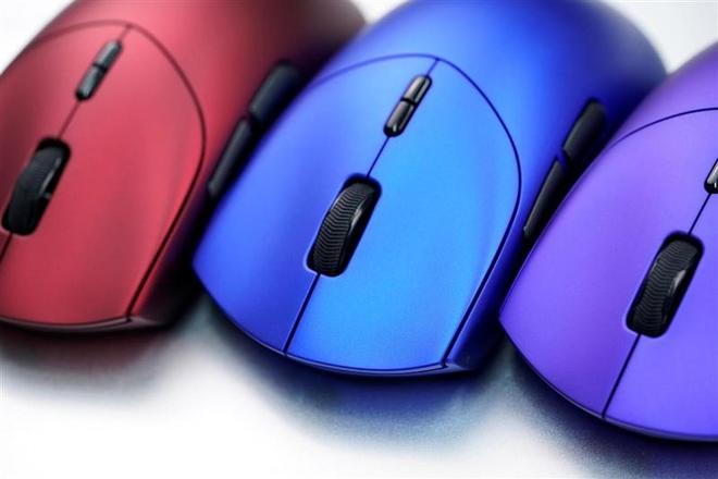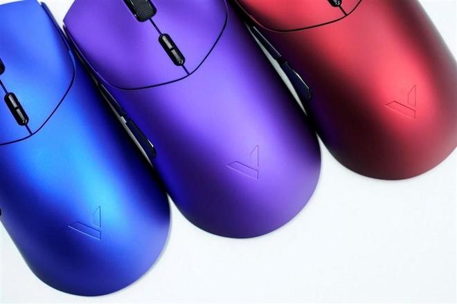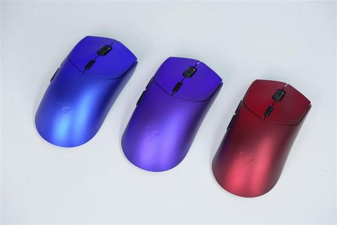雷柏VT7金属漆鼠标的新的夜光蓝、魅影紫和缎绯红在A-Hub上的显示效果。