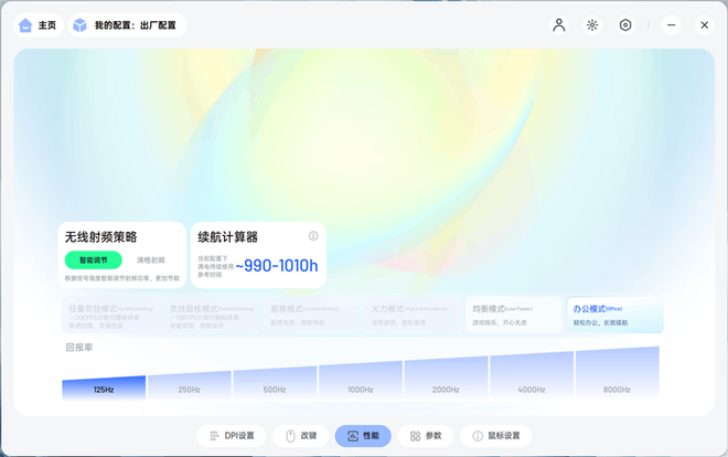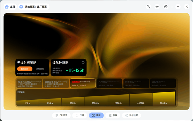 在性能最强的狂暴竞技模式下,将无限射频策略也设置为满格射频,雷柏VT7金属漆鼠标也可以保证75小时左右的续航。
