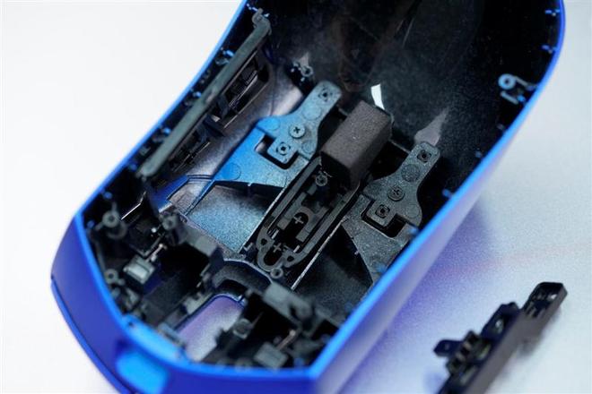 这里可以看到雷柏VT7金属漆鼠标上盖精细的模具,左右键的限位装置既保证了按键手感的统一,也可以防止意外被掰开损坏。