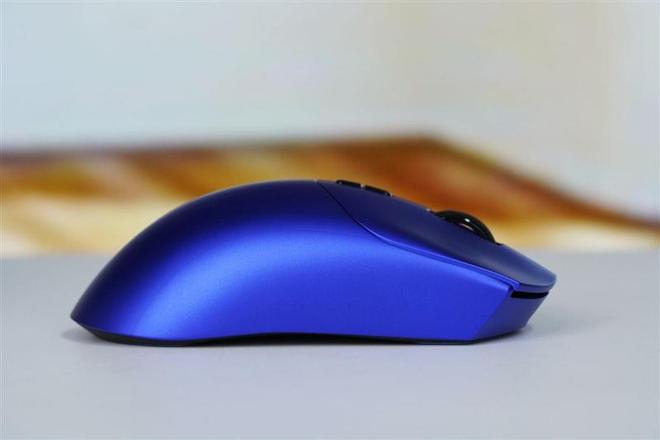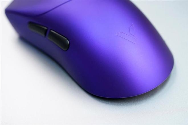 亲肤防滑涂层并没有遮挡VT7金属漆鼠标表面的独特质感,在鼠标的流畅曲面上呈现出一种流动的光泽,光线下金属漆表面会有更非丰富的色彩明暗变化,金属质感强烈。