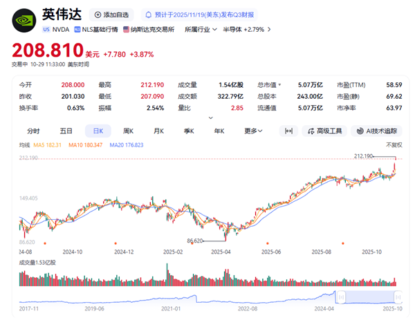 10月29日消息,今晚美股开盘,英伟达股价上涨3.2%,市值站上5万亿美元,成为史上第一家市值5万亿美元公司。